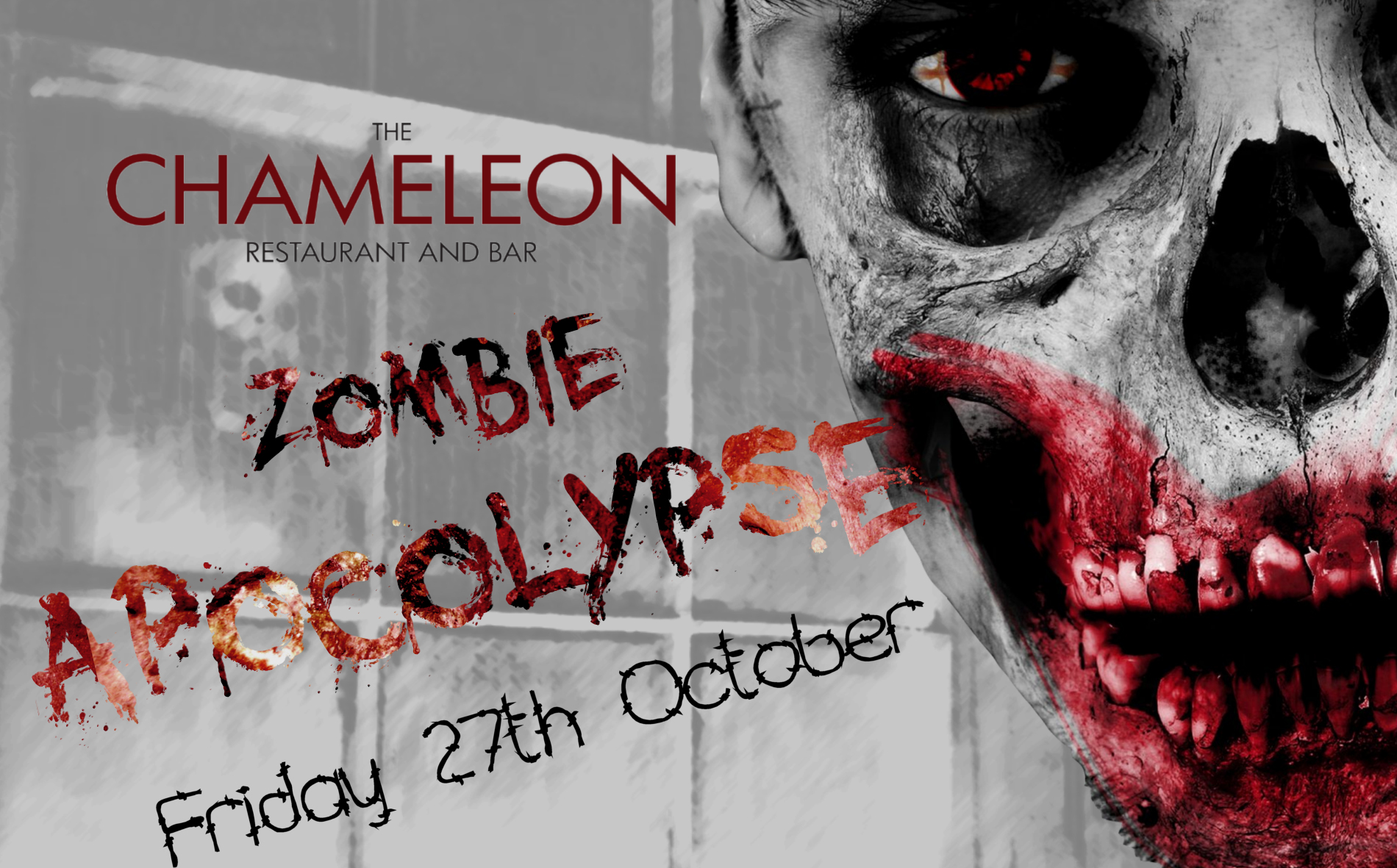 ON FRIDAY 27th OCTOBER 2017 The Chameleon hosts the end of world the Zombie Apocalypse is here. there will be a 6 hour set to mark the night of the undead.